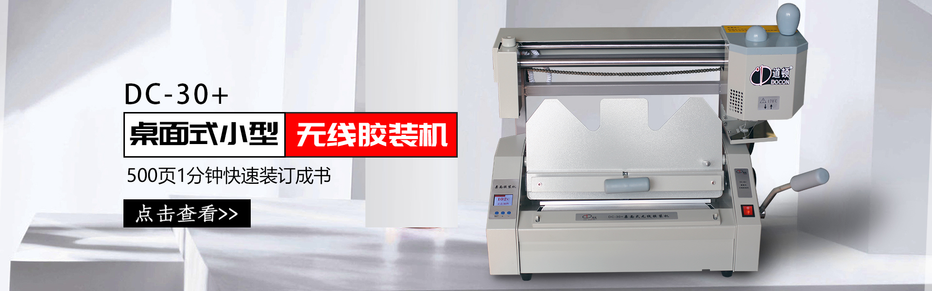 桌面式膠裝機、柜式膠裝機、手動膠裝機、全自動膠裝機、pur膠裝機,多個系列,多個型號,廣泛適用于圖文店、文印中心、印刷廠等行業和單位,用來裝訂制作標書、書籍等,效率高,成型書本規整美觀。